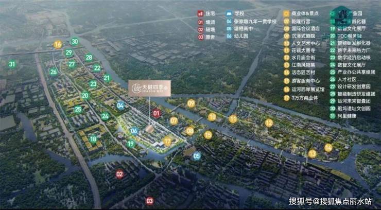 天樾四季城地处秋石中轴与运河发展轴双轴汇心的区域,绿地&合景&招商联袂巨著,怀着“尊重传统,珍视未来”的初心,萃取京杭运河元素,以“骨子里的杭州”为概念,打造约30万方未来繁华城市中心体,用古典穿插现代的手法更新杭州这座城市的面孔。两条天然水系围绕,打造约0.6万方开放式滨水商业街区、约1万方高端酒店、约3万方MALL、现代主义低密住区等多业态MIX,构筑城北人居新天际。
