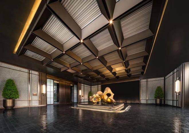 酒店入户同样是对标半岛酒店,车马院落客区的檐口、标识、星空顶等,增强入户的仪式感和奢华感。落客区的接待门采用海鸥丽晶酒店同款,尽显酒店式归家体验。