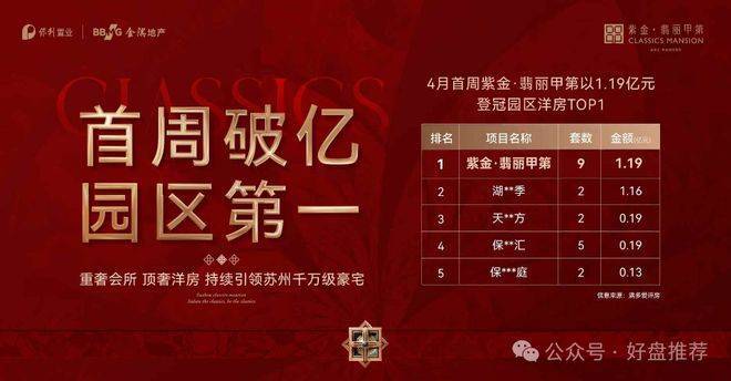 以1.19亿的成交金额登冠园区TOP1