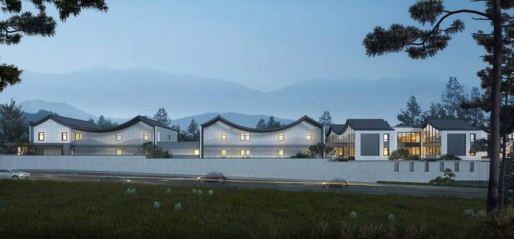 建筑的屋顶采用了非常东方的人字坡顶。通过大面积落地玻璃窗设计,模糊空间的边界感,建筑内部与外部协调融合,在获得充沛光线的同时,视野可以以更大的广 度左右扫视,将更多风景迎入室内来。