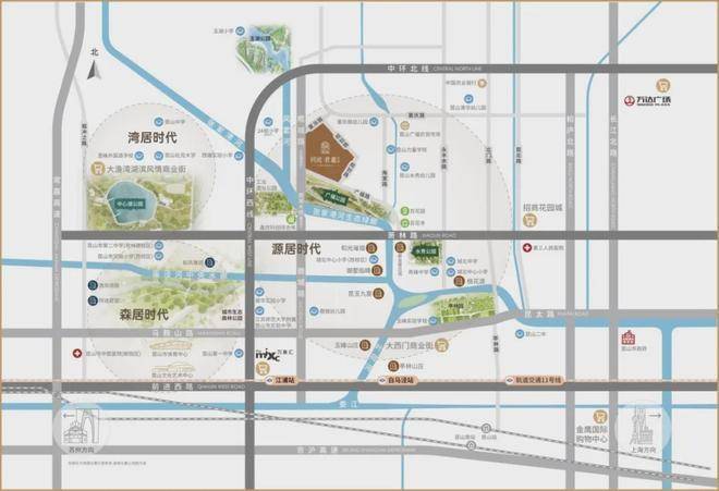 先瞻昆山绿脉,私藏双园一湾生态长廊。繁华都市中,业主也能拥有宁静悠然的生态环境,实现出则繁华、入则宁静的森居生活。