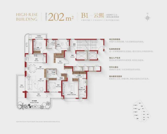 再来看看户型设计,完美呼应了四代宅的超高使用率,空中露台、阳台等各项数据的尺度非常惊人