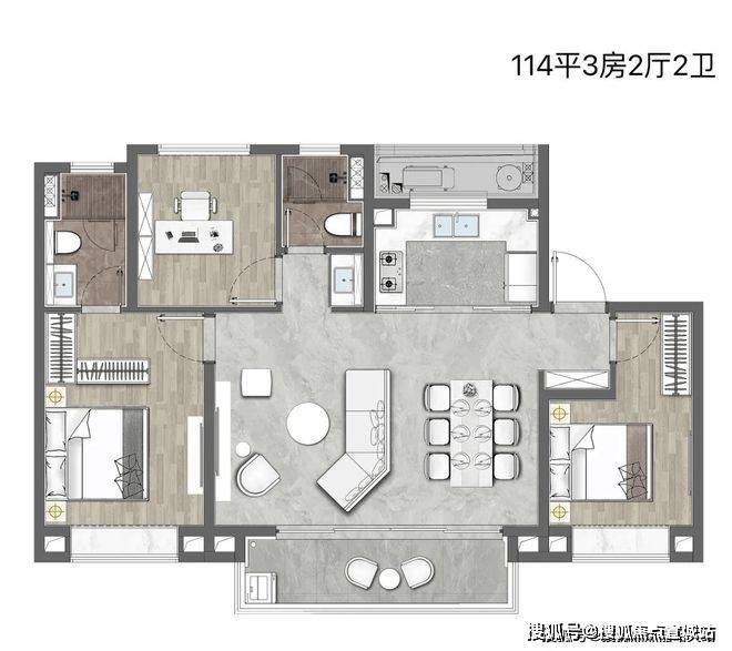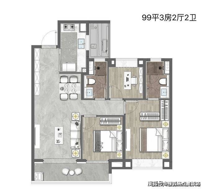 大面积的套房尺度,大尺度进深、从容有余的居住空间,奢阔飘窗、独立卫浴配置,打造尊崇的奢雅体验。百平米内的不将就三房,实现房间数量及空间尺度的均好平衡。