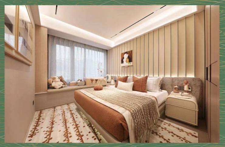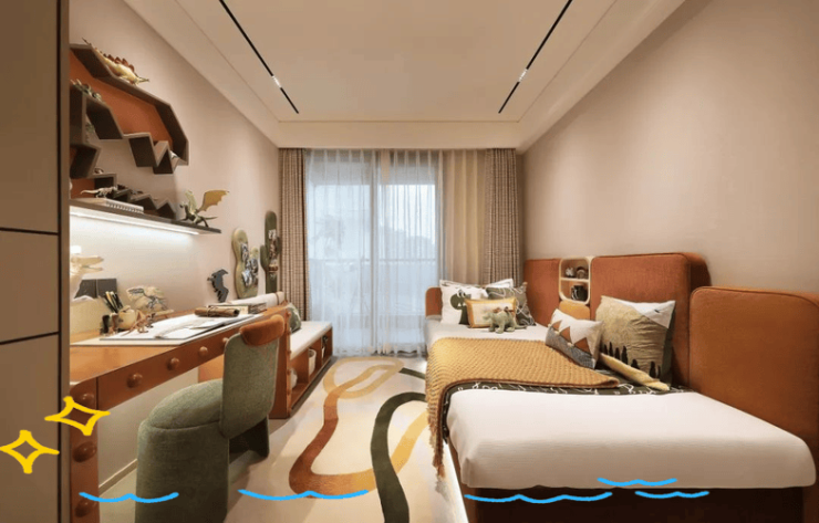 除了朝南的主卧套房、双次卧,北边还可打造出书房或功能房,满足孩子的学习和兴趣培养;如果家庭不断成长,4个房间也足够满足业主不断进阶的需求。