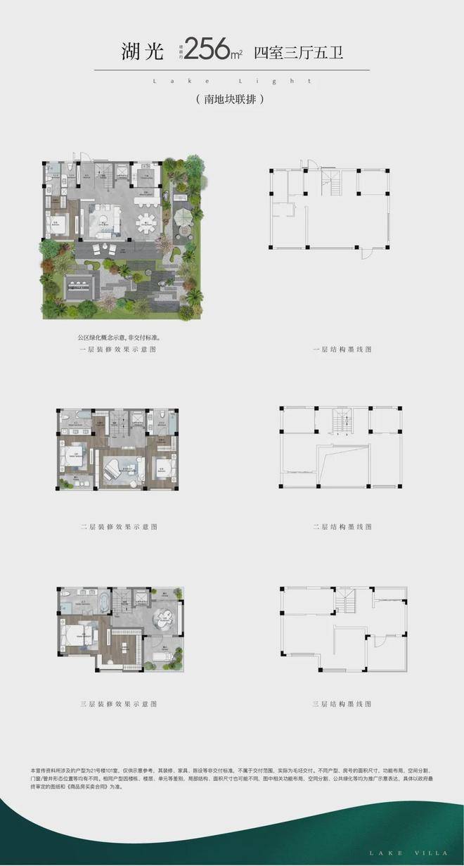 (1)联排:打造约246m²、约256m²(边户)、约280m²三个户型面积,以迭代的联排作品,致敬真别墅的回归