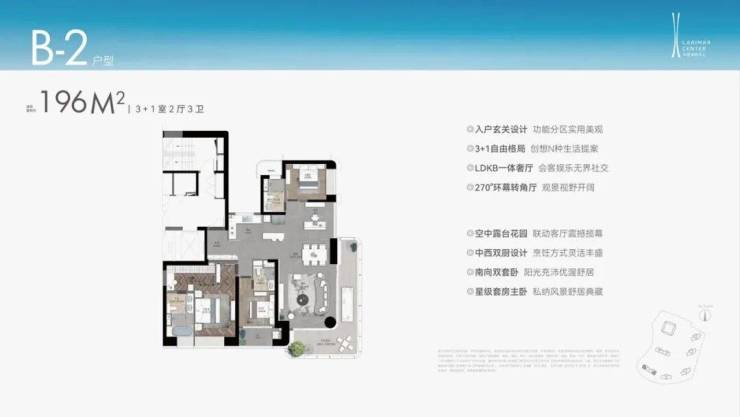 在这款户型的隔壁,就是建面约196㎡的户型——