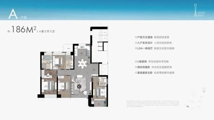 比如这款建面约186㎡户型——