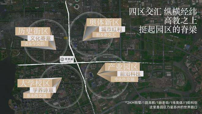 项目自诞生起则自带「文化大宅」基因。择址独墅湖大道和星塘街交汇处,纵横经纬之间,将土地划分四个区域——向上,古今文化交织、新老地标交汇;向下,东西学府交融、中外企业交流。