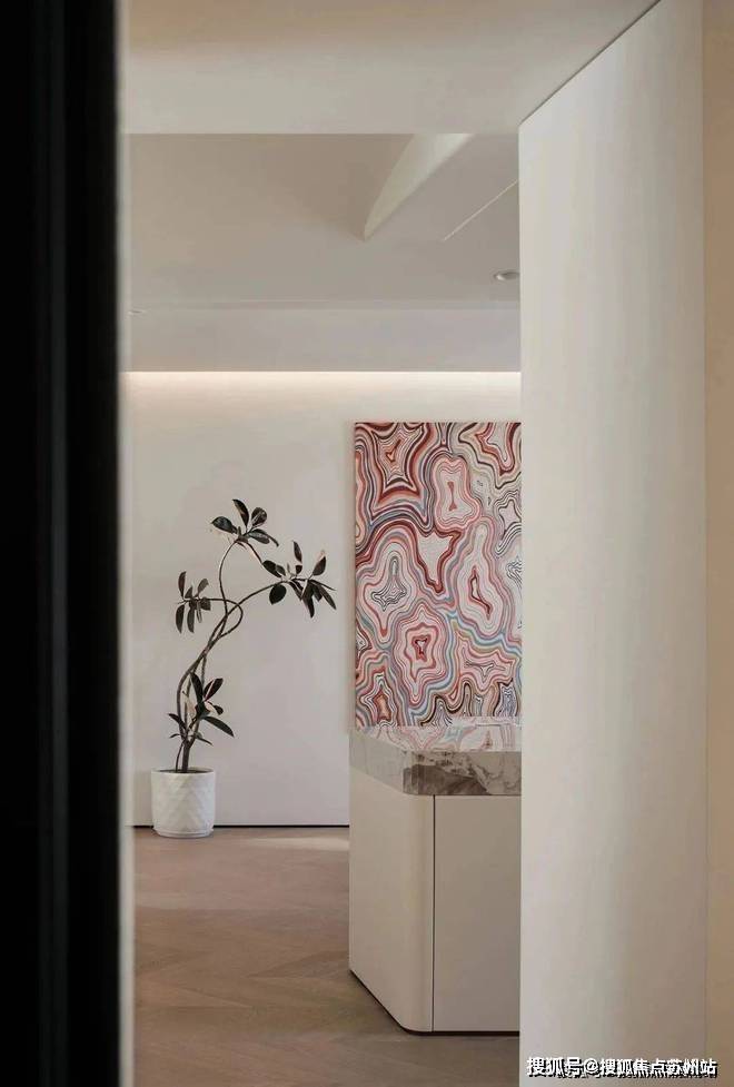 白色墙体与原木色地板奠定了全局设计的底意——温和低调,以及几分温度.舒适感在低饱和度中得到满足,时间流逝的速度在踏入玄关那刻就已变得缓慢.