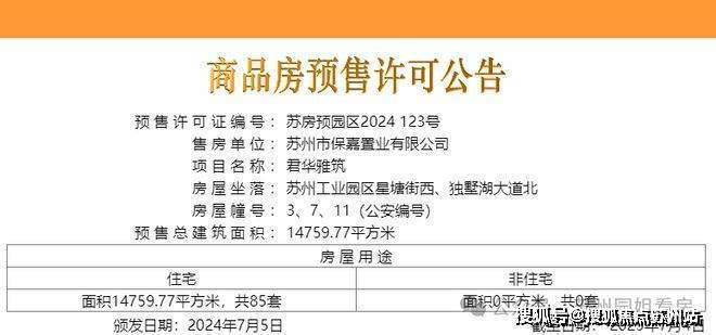 园区纯新洋房项目君华赋(备案名:君华雅筑)领取了二批次房源预售证.