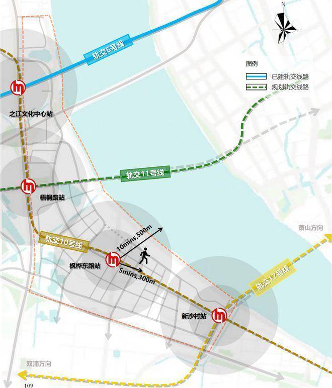 至少4个地铁TOD上盖组团,从北至南依次是之江文化中心站TOD、梧桐路TOD、枫桦东路TOD和文体中心TOD,以站点为核心,还将开发地上+地下商业空间,各组团之间还能加强联系。