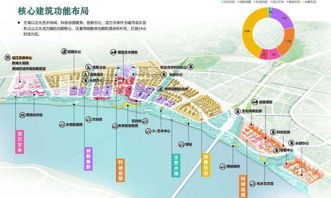 规划了最高150米的地标塔楼,滨水商业、星级酒店和滨水广场等设施。从长远来看,对于之江来说,这就相当于是一面旗帜、一个符号、一张名片了,吸引更多知名企业入驻,直接提升之江的知名度和发展能级。