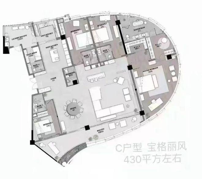 项目以三叶草为建筑原型,这样的建筑设计也造就了每户270度的环幕都市景观,较高的窗墙比为室内提供大尺度的采光面及通透感,阳光如流水般倾泻。
