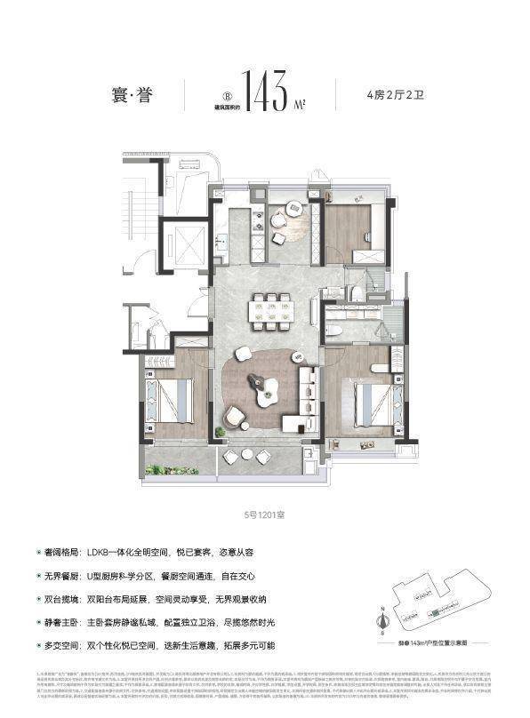 建面约143㎡户型,以最高约14.2米的南向面宽,重新定义内环尺度。准一梯一户与约8㎡的独立电梯厅,构成了归家的尊崇序章,并可整体定制为顶天立地的收纳系统,将奢侈留给日常。
