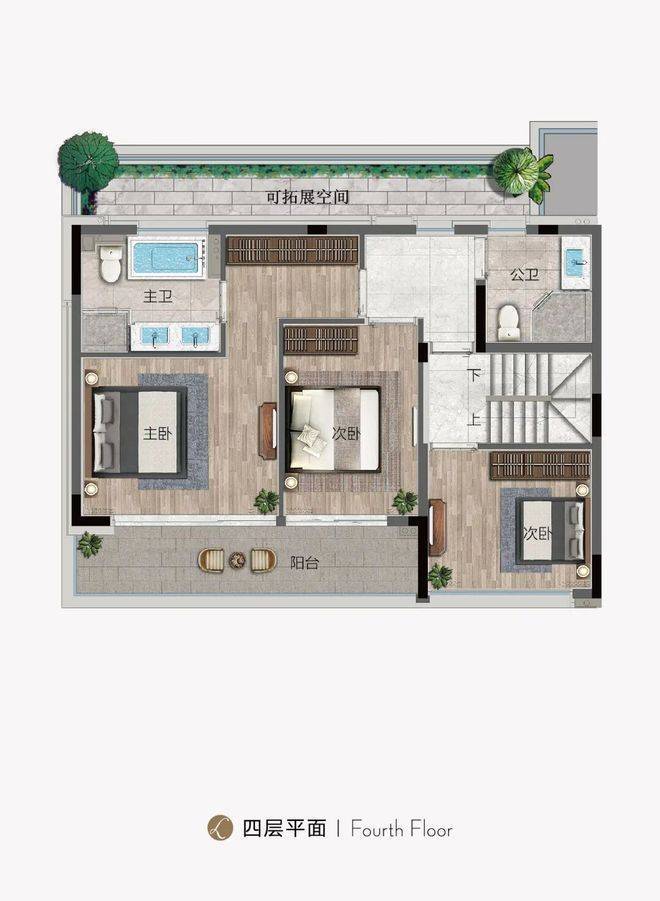 上叠:以195㎡的五房四卫,除了二层规划了朝北露台外,三层的空中阁楼,从多功能空间推门而出,竟然是一个“270°环幕式”生活露台,面积有70㎡左右。它可以是你抽离纷杂尘世的秘密花园,也可以是朋友聚会的快乐之地。