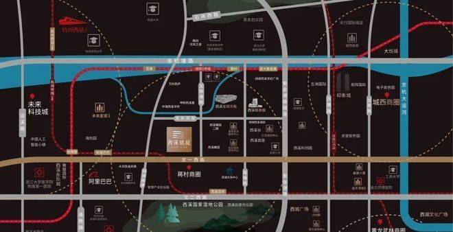 择址蒋村板块,地理位置优越。东接繁华的文教区,西临“宇宙中心”未来科技城,距离西溪湿地直线距离仅800米,闹中取静,拥享静谧诗意生活。
