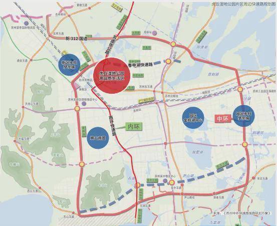 高架快速路:西环快速路(项目西侧可上西环快速路,30分钟内到达新区,园区,市区核心商圈位置);春申湖快速路(项目北侧可上中环,最快预计15分钟到达园区星湖街核心位置)