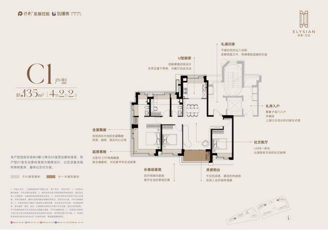建面约135m²户型的飘窗附赠面积超过了12m²(专业建筑师测算),赠送面积远超常规户型的次卧!