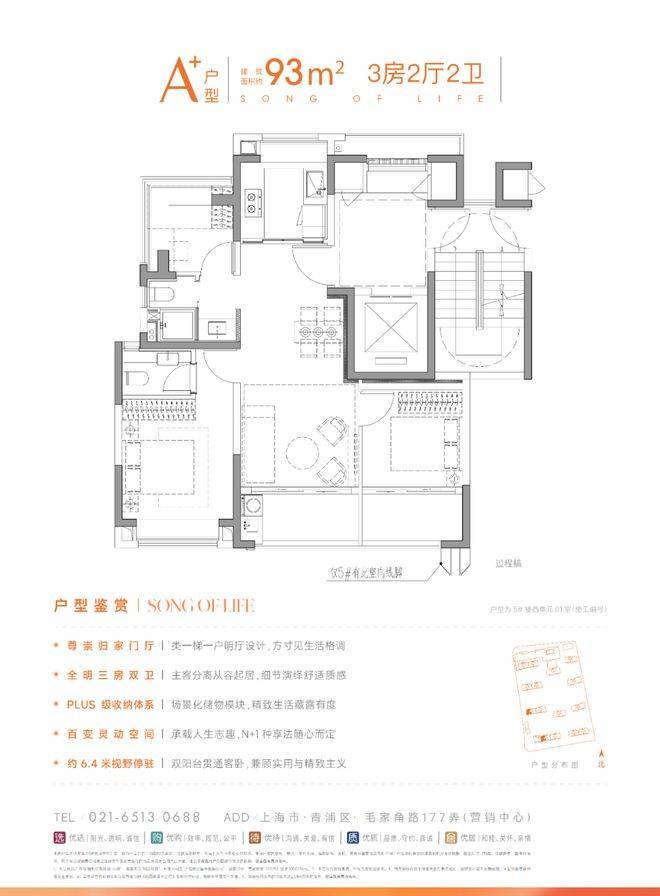 ②、建面约102㎡3/2/2,景观与实用平衡得恰到好处