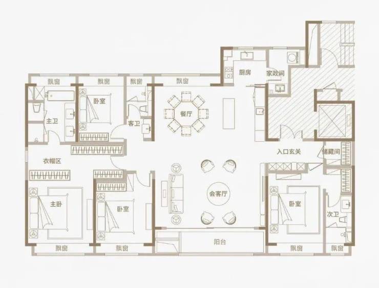 光从户型图来看,三种户型均为四开间朝南设计,同比市面上两百平左右的平层住宅,南向面宽资源更为宽阔;三种户型均打造出了4房2厅3卫的全能格局,主卧+次卧为双套房设计;此外,所有空间皆为全明设计,全屋多达8个飘窗!