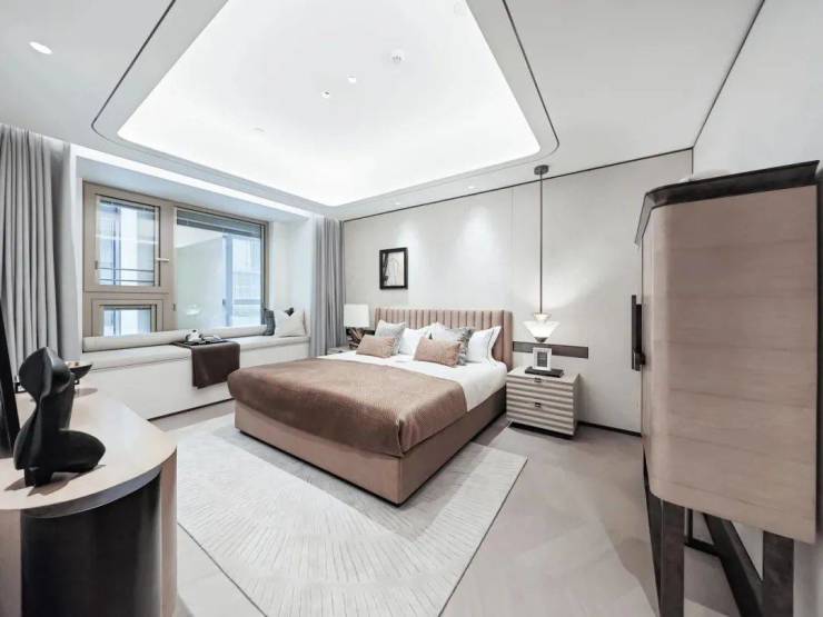 入户后进入一间卧室,自带独立南向卫生间,两处朝南的位置皆有飘窗。倘若不告诉你这是个次卧,你或许会误以为它是主卧。