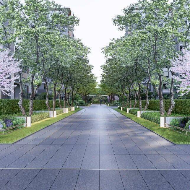 292、效果图:一种表现建筑外立面、小区景观等的平面图片。