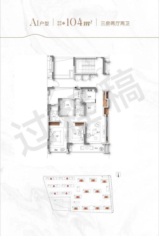 【户型面积】建筑面积约104㎡、129㎡、137㎡、169㎡、197㎡跃层