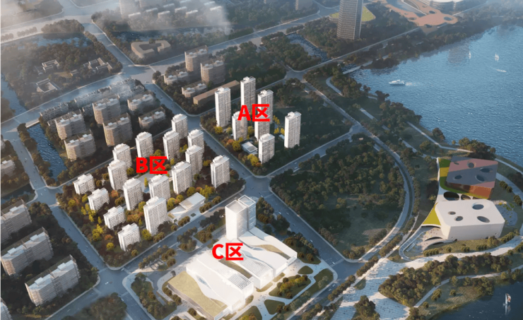 我们先来看一下项目整体的分布,整个地块由三宗小地块组成。其中A、B为住宅区,C区为图书馆。三个地块都必须按照 “绿色三星级及以上建筑标准”来建造,并且满足海绵城市等需求。