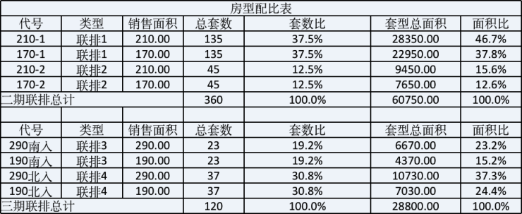 户型分布如下,建面约170-290㎡▼