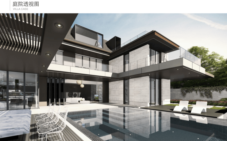 北入户的190+290房型,一层朝南直面庭院和泳池,如果配上整扇的落地玻璃移门......