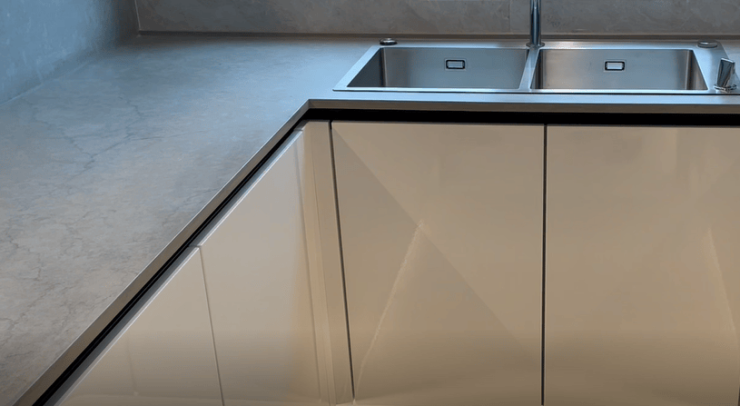 橱柜是欧洲柏丽中西橱柜,德国厨具行业标准。台面用的高科技材料-岩板,环保健康、防火耐高温耐刮磨。汉斯格雅水槽及厨房龙头,还配了smeg垃圾处理器。