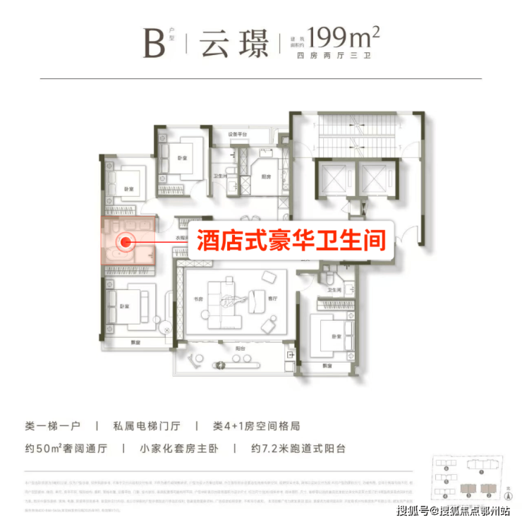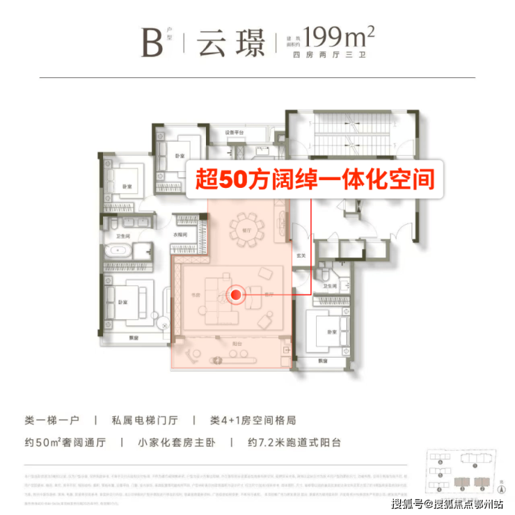 即将加推的建面约199方B户型,是世纪城首屈一指的神户型,装修更是碾压级: