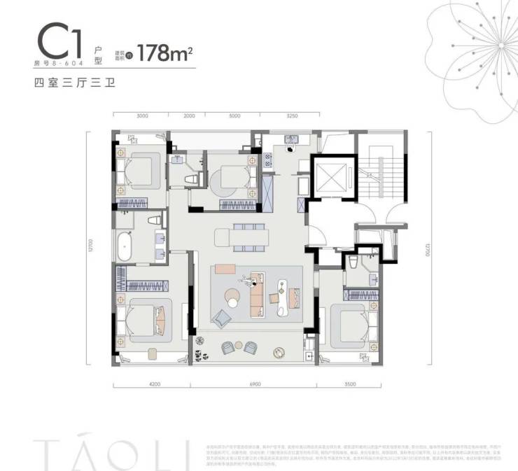 规划主力建筑面积约108-178㎡户型,标准层高约3.1米。定位纯粹品质改善社区,户型设计引入「无界方厅」创新理念营造互动,开放自定义的居住空间。