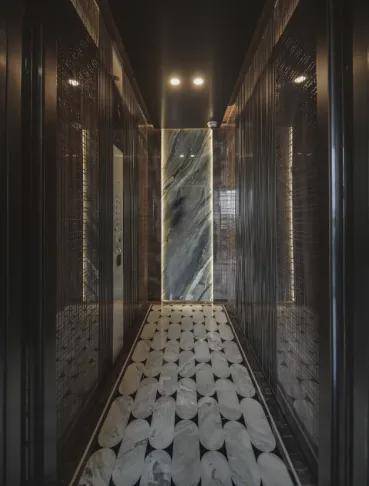 酒店式落客大堂挑高达7.5米恢弘之势,开启渐进式的礼序归家情境风范之间,让停留成为至高无上的仪式。