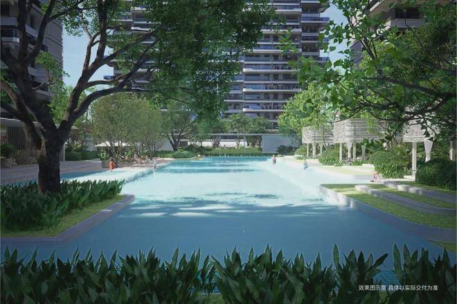 约2300㎡中央立体水亭,天气好的时候阳光一照就是浮光跃金的画卷,仿佛将整个水上乐园搬至家中。
