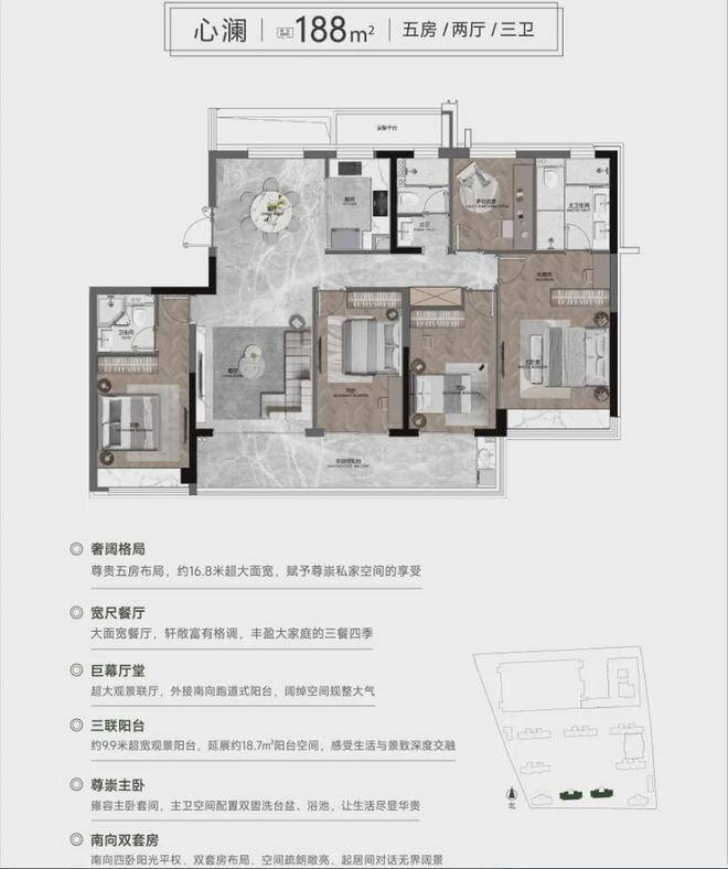 【户型面积】约105㎡、118㎡、134㎡、135㎡、144㎡、169㎡、188㎡