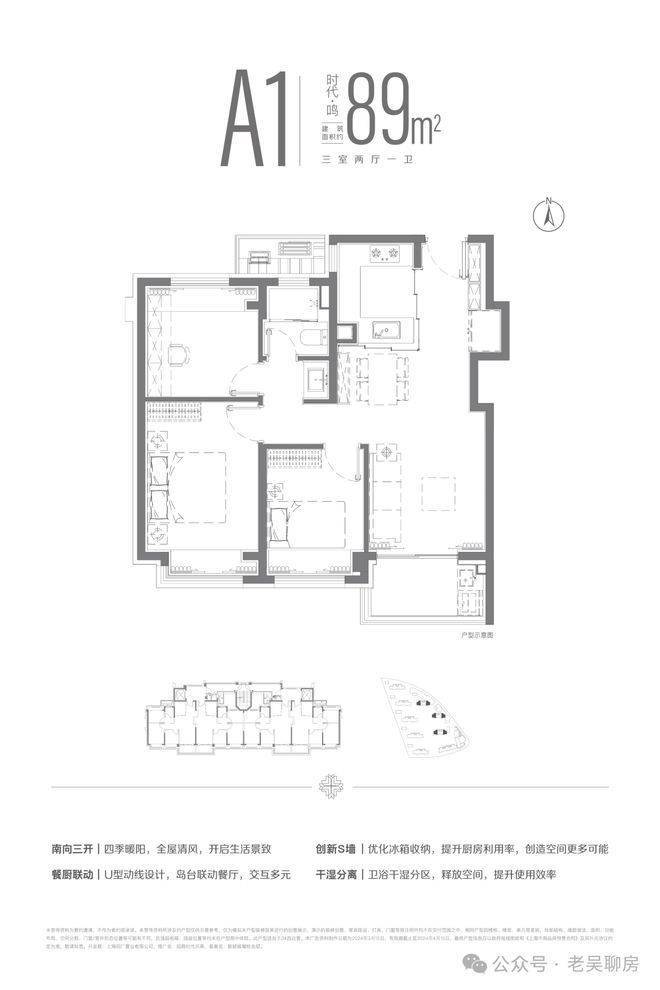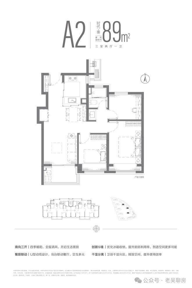 上海宝山招商时代乐章官方电话:400-993-9964...建面约89m²三房两厅一卫户型,LDKB一体化设计,南向三开间布局,全明空间设计。让四季流转于生活之中,用自然营造生活的惬意。