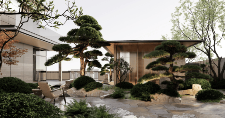 杭州城之前的合院盘,一般只有一个中心庭院。但理想荷院东区、西区各有2个中心庭院。芝花海棠的花街铺地上,老树婆娑、山石嶙峋、叠水飞瀑,整个园区单太湖石就用了约1100吨。