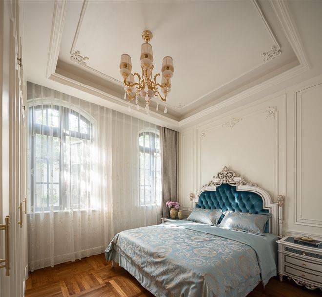 餐厅承载家庭烟火与相聚时光,延续法式轻奢风格,细节暗藏巧思:别致吊灯、餐桌雕花或墙面艺术画,让用餐不再是简单饱腹,而成为充满仪式感的家庭聚会。