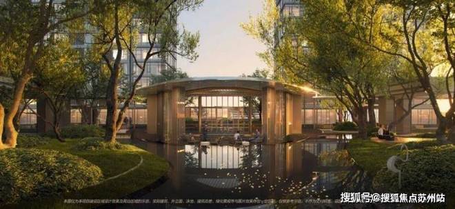 园林面积约1.3万㎡,融入江南四大名园造园手法,设计贯通式连廊、水景及艺术小品,打造“游园式大平层”