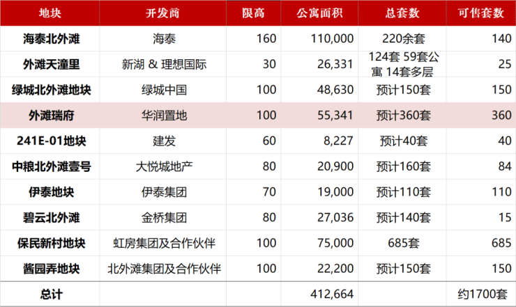 首先,大北外滩区域所有可售的住宅项目,住宅规划约108万平方米,其中约14万平方米已经出售,意味着总可售面积约为94万平方米。