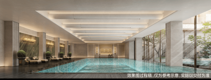 “双会所”设计是项目的另一大亮点。洋房和高层组团内的会所面积就近2200㎡,涵盖恒温泳池、健身房、私宴厅和网球训练馆等多样化功能。