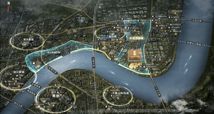 该区域按照“一带两城”战略规划,重点打造钱塘汇、金沙嘴、望海潮三个先行启动区块。