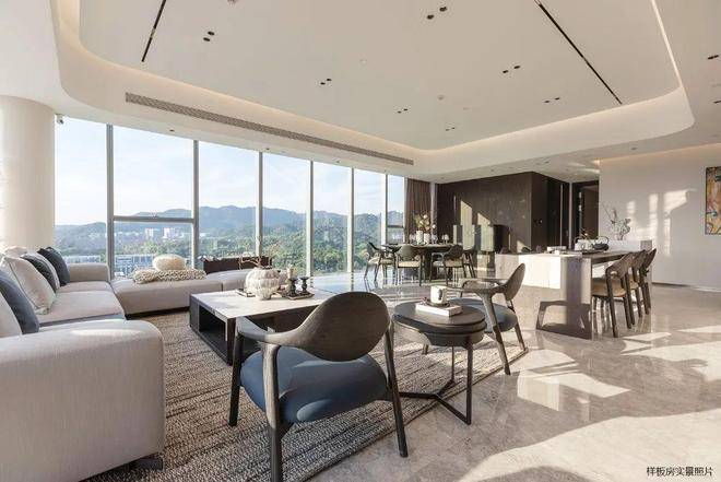 户型特点:主力户型为建面约310㎡山景大平层,客厅面积约70-75㎡,主卧约55㎡,配备全屋国际一线品牌精装(如博世厨电、杜拉维特卫浴)。