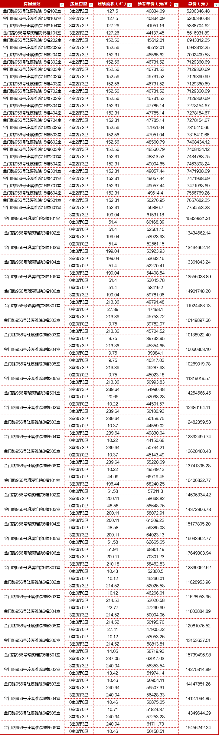 叠墅备案均价:55035元/㎡,单价区间:45094元/㎡-70023元/㎡,总价区间: 约1006万-1765万。