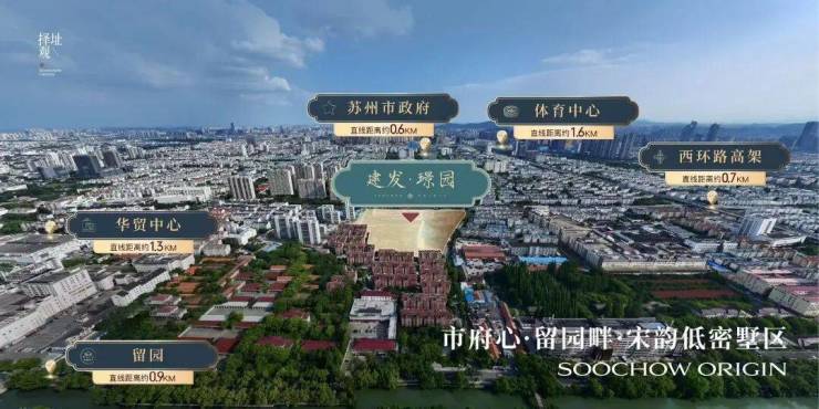 东揽石路商圈、七里山塘的繁华盛景,西承千年古刹寒山寺(约1.6km)的悠悠禅意,北倚西园寺(约0.7km)、留园(约0.9km)等文化遗产的深厚底蕴,南望苏州市政府所在的城市核心。四大方位,将姑苏最璀璨的繁华、文脉、历史与权枢,尽汇于一域。