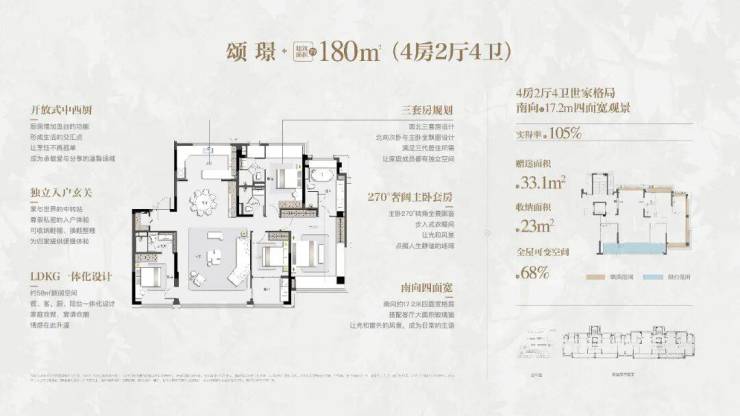 项目通过创新设计实现得房率98.7%-105%的突破,其中建面约180㎡户型赠送面积达约33.1㎡,在古城核心区堪称"空间奇迹"。