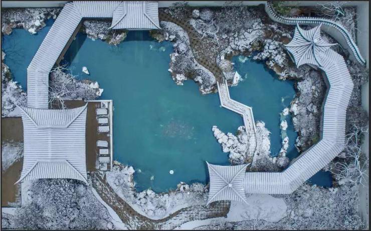 园林景观则以山水相映、亭台楼阁错落有致为特色,实现了“园中有房”“房中有园”的格局,一处如《桃花源记》般悠然意境的东方秘境,于繁华都市中悄然落成。