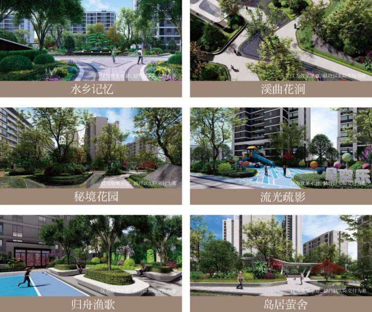 打造 “水乡记忆、溪曲花涧、秘境花园、流光疏影、归舟渔歌、岛居萤舍” 六大度假主题园林,将嘉兴水乡元素与现代造园手法结合,一步一景皆是诗意。