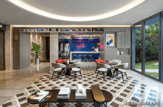 进入悦麟的首层大堂,是约9米的超高挑空,而在大堂之上的5F还设置了供所有业主使用的X-Club公共活动空间.